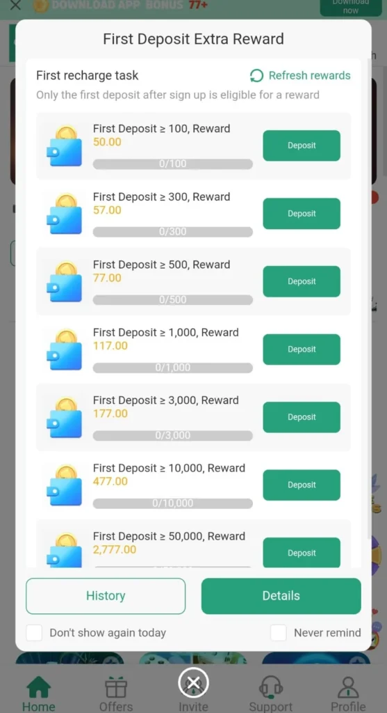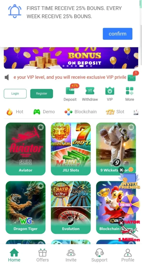 - Refer and Earn: Users are incentivized to share their unique download links on WhatsApp and Telegram, earning a commission on their referrals’ deposits.